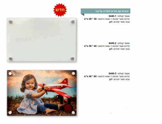 תמונה על זכוכית מידות 40-60 כולל 4 ספייסרים לתליה