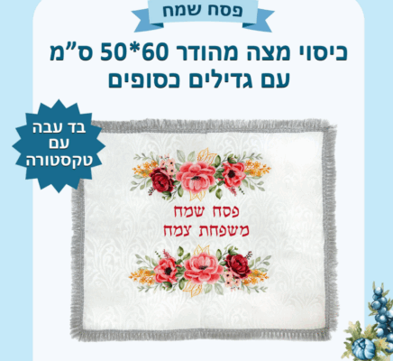 כיסוי מצה מהודר 50 60 עם גדילים כסופים
