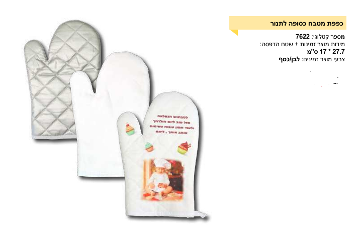 כפפה למטבח עם הדפסה אישית יכולה להיות דרך נהדרת להוסיף נגיעה אישית למטבח או לתת מתנה מקורית ומרשימה. ישנן כמה אפשרויות לעיצובים אישיים לכפפות מטבח: