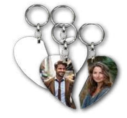 מחזיק מפתחות לב חצוי הוא אחד המוצרים הכי נמכרים, במיוחד כמתנה זוגית או לחברים הכי טובים (BFF). בסובלימציה, זה מאפשר להדפיס תמונה של כל אחד מבני הזוג על החצי שלו, או שמות שמשלימים זה את זה.