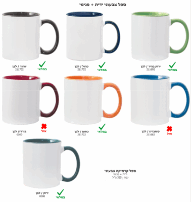 ספל קרמיקה צבעוני ידית ופנימי עם הדפס אישי